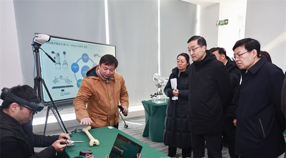 在山東省腫瘤醫(yī)院重離子硼中子項目,劉強(qiáng)實地察看了項目建設(shè)進(jìn)展,詳細(xì)了解中核粒子等項目招引情況,強(qiáng)調(diào)要堅持高標(biāo)準(zhǔn)建設(shè)、高水平運(yùn)營,確保項目早建成、早投用。在醫(yī)療硅谷,劉強(qiáng)詳細(xì)了解片區(qū)項目引進(jìn)落地情況,指出要強(qiáng)化統(tǒng)籌規(guī)劃與產(chǎn)業(yè)協(xié)同,加快形成“醫(yī)、研、產(chǎn)、服”一體化發(fā)展格局。在南北三號路涉鐵段項目,劉強(qiáng)實地察看工程進(jìn)展,要求加快打通斷點(diǎn)堵點(diǎn),提升區(qū)域交通建設(shè)管理水平。在精準(zhǔn)醫(yī)學(xué)產(chǎn)業(yè)園,劉強(qiáng)察看中韓醫(yī)療服務(wù)產(chǎn)業(yè)合作平臺建設(shè)進(jìn)展,強(qiáng)調(diào)要聚焦前沿醫(yī)學(xué)技術(shù)攻關(guān)與產(chǎn)業(yè)化融合,切實將科技優(yōu)勢轉(zhuǎn)化為產(chǎn)業(yè)發(fā)展動能。在錦瑟醫(yī)療和強(qiáng)腦科技項目,劉強(qiáng)實地了解腦機(jī)接口等前沿技術(shù)的研發(fā)應(yīng)用進(jìn)展,強(qiáng)調(diào)要支持企業(yè)與醫(yī)療機(jī)構(gòu)深化合作,推動產(chǎn)業(yè)鏈上下游協(xié)同聯(lián)動。